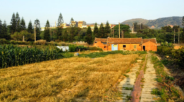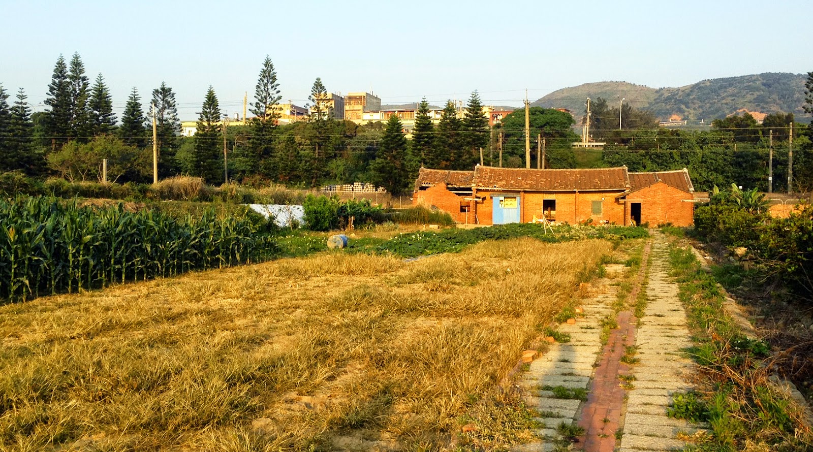【車站附近,略顯殘破的閩式磚房,前方田地倒是保養有佳。】